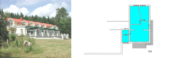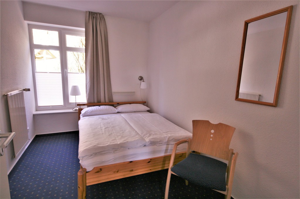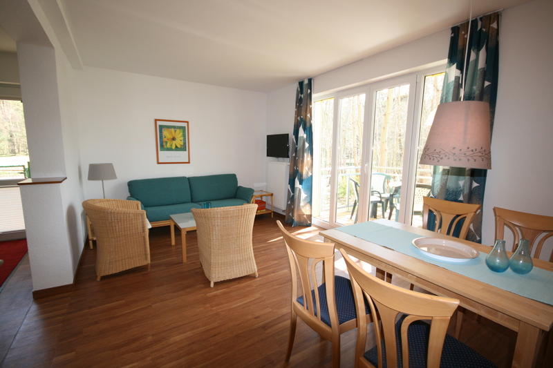 Zwei Schlafzimmer mit je einem Doppelbett, ein Flur mit einer Garderobe, ein weiterer Garderobenschrank sowie ein Bad mit Dusche, WC und großzügigen Ablageflächen bieten viel Komfort für bis zu 4 Personen. Vom ebenerdigen Balkon haben Sie einen herrlichen Blick über den Dreier See; in nur wenigen Schritten gelangen Sie von dort zur Badestelle, weshalb diese Wohnung insbesondere für Familien mit Kindern, aber auch für Menschen, denen das Treppensteigen schwerfällt, geeignet ist.