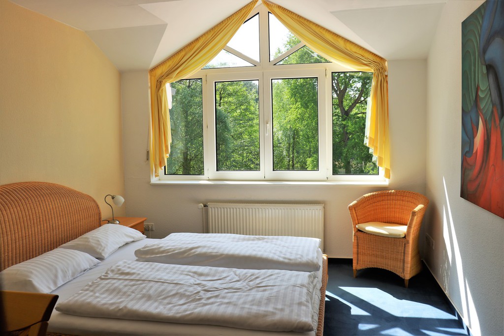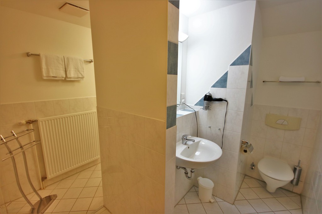 Bei Bedarf kann ein benachbartes Einzelzimmer mit eigenem Duschbad dazugebucht werden. (Bitte gesondert erfragen.)